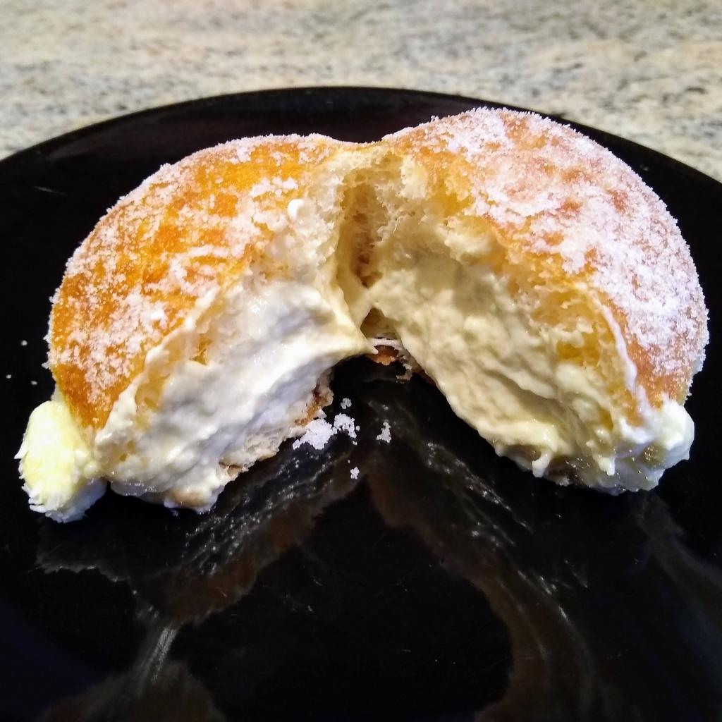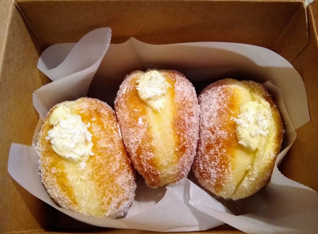 The Flour Box sells filled brioche donuts, coffee, and tea. Every week brings a new flavor here. Perhaps the durian flavor this week would put off some of the less adventurous, but, considering that pre-orders for 600 durian donuts were sold for a single day within minutes, this was clearly not the case! We opted for 4 durian donuts and a Shy Fog Latte. The dough was delicious and one of the best examples of a brioche donut we have ever tried. It was the perfect combination of light, airy, and buttery. We personally found that the durian flavored cream filling was a little much for us, but the the texture of the filling was delectably light and we are confident that many will find the durian flavor appealing. We greatly look forward to trying many new flavors from The Flour Box. We see that they will soon be selling creme brûlée flavored donuts and we are extremely tempted to visit two weekends in a row. That is, if we can manage to pre-order within seconds before the supply is out…